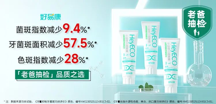 经过层层筛选及审核,以严格著称的老爸抽检团队对好易康清新稳白双效牙膏的产品功效、原料品质、配方安全、研发原理及作用机制、生产工艺及流程、质检及储存等方面进行检测,目前各项目已经全部达到老爸抽检合作要求!